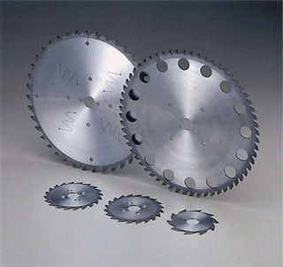 These chip saws are edged with PCD (polycrystalline diamond) and can produce finer surfaces than cemented carbide / tungsten carbide tools while lasting ten times as long. They are effective for cutting and grooving of architecture materials, wood, aluminum alloys, glass fiber composite materials, rubbers, and plastics.